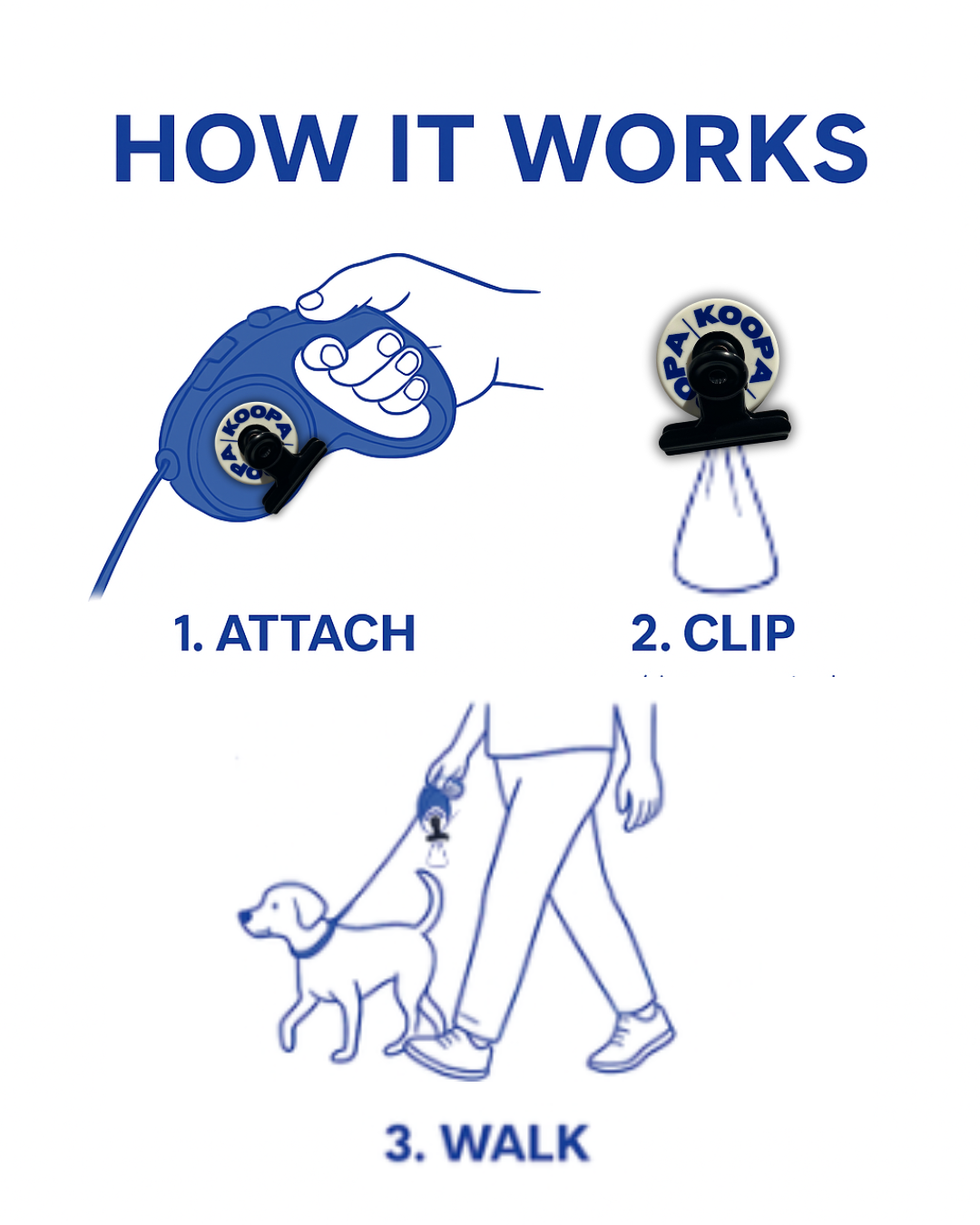 Absolutely. The Koopa Clip is designed for quick, intuitive attachment—just clip it onto your retractable leash and you’re set. No tools, no fuss—just grab and go.